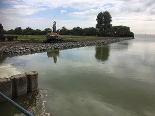 Recent hebben wij de vooroever bij de uitstroomgeul van een gemaal aan de Oosterdijk te Enkhuizen hersteld met klei, kraagstukken en breuksteen. In opdracht van Hoogheemraadschap Hollands Noorderkwartier. Zie bijgaande foto’s.